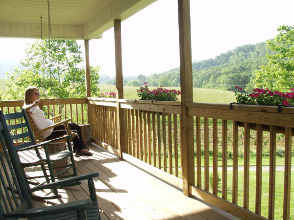 Front Porch Rockers & Swing to embrace the beauty of the mountains & river below